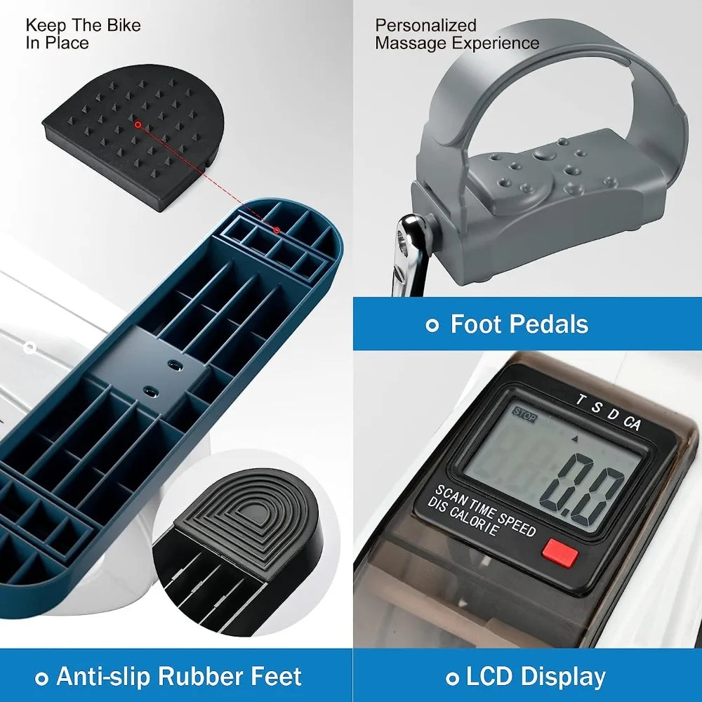 - ▲Functional LCD Monitor Displays:▼ Portable foot cycle arm & leg peddler machine with LCD screen displays includes exercise time, revolution count, revolutions per minute(RPM), calories burned and resetting button and easily to arrange your exercise information data. Moreover includes a scan feature that can show all measurements in sequence.